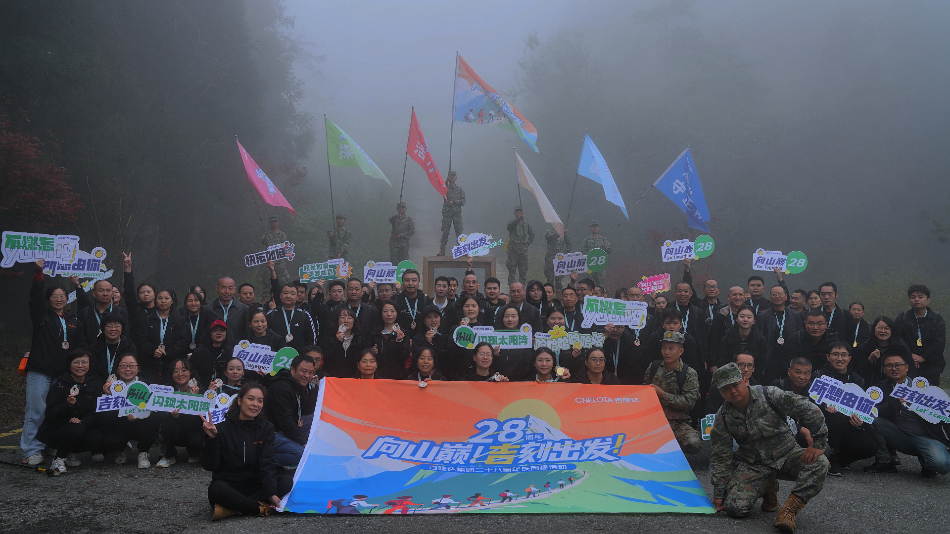 二零二五年十月二十八日,CHELOTAfun88乐天使迎来创立二十八周年。在这个承前启后的重要时刻,集团总部与小汉分公司全体员工分别齐聚彭州太阳湾景区,以"向山巅,吉刻出发"为主题,开展了一场寓意深远的徒步庆典。